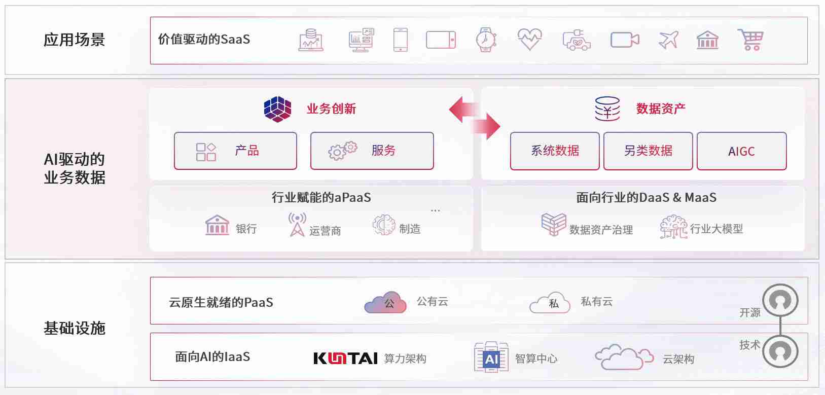 数字时代,,,围绕企业数字化转型的关键要素,,,,尊龙集团数码开创性的提出数云融合战略和技术体系框架,,,,着力在云原生、、、、数字原生、、、AI原生和信创产业上架构产品和服务能力,,,,为处在不同数字化转型阶段的快消零售、、、、汽车、、金融、、医疗、、、政企、、教育、、、运营商等行业客户提供泛在的敏捷IT能力和融合的数据驱动能力,,,,构建跨界融合创新的数字业务场景和新业务模式,,,助力企业级客户建立面向未来的核心能力和竞争优势,,全面推动社会的数字化、、、智能化转型升级。。